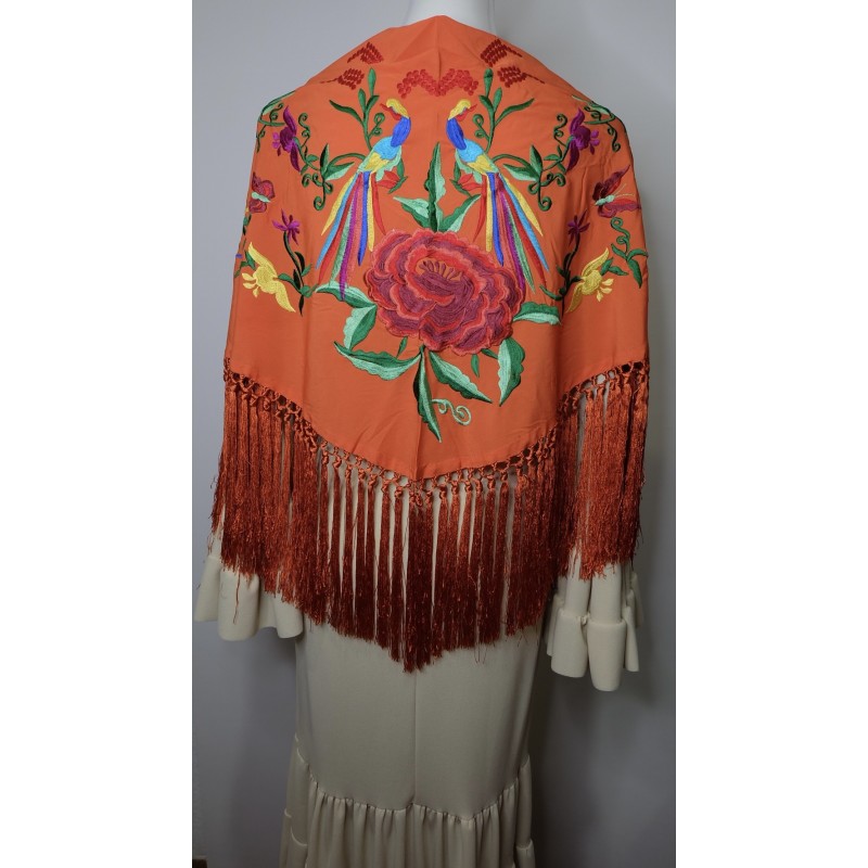 Manton begoña naranja bordado de pajaros