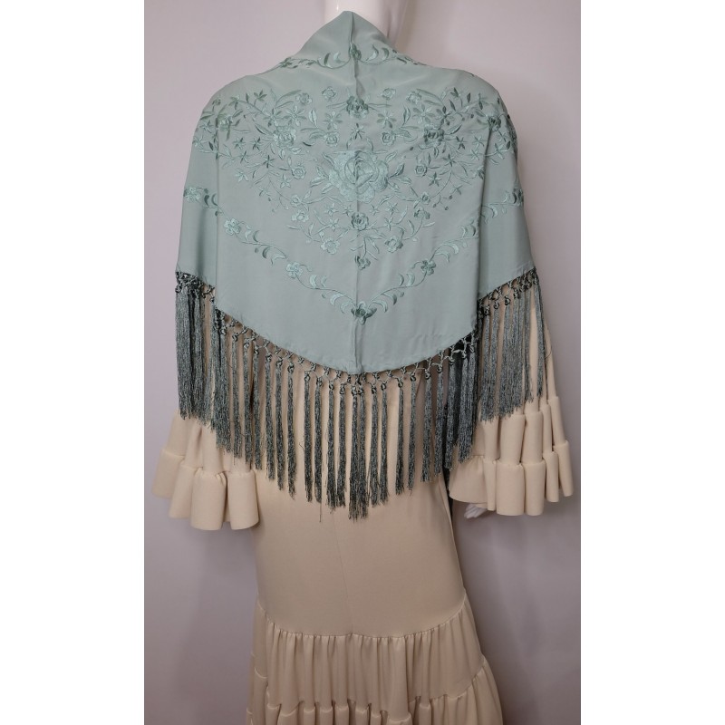 Mantón de seda Begoña Verde jabonoso bordado al tono