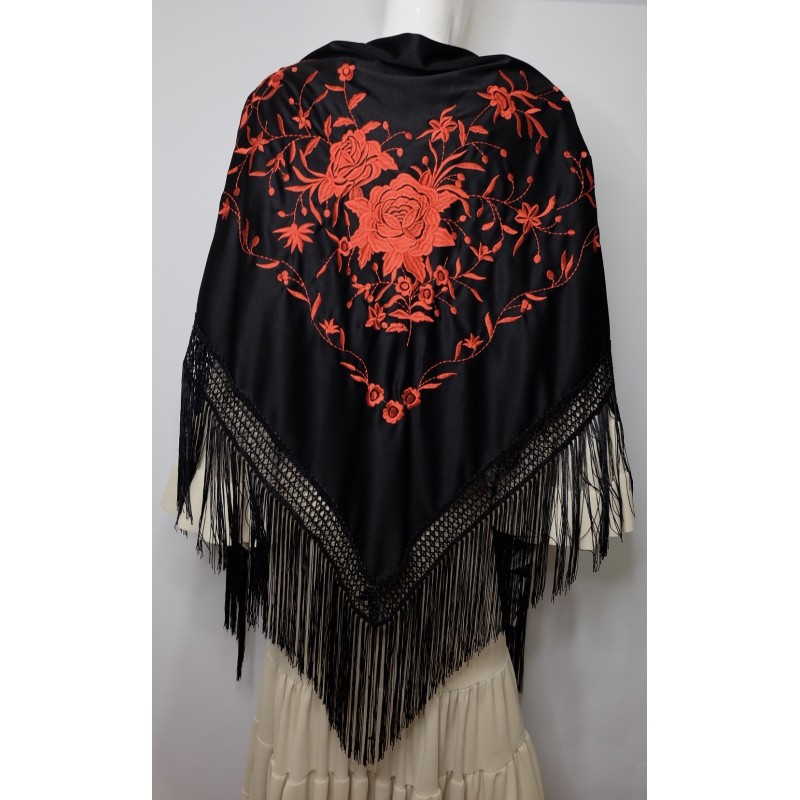 Mantón bordado y flecado a máquina grande