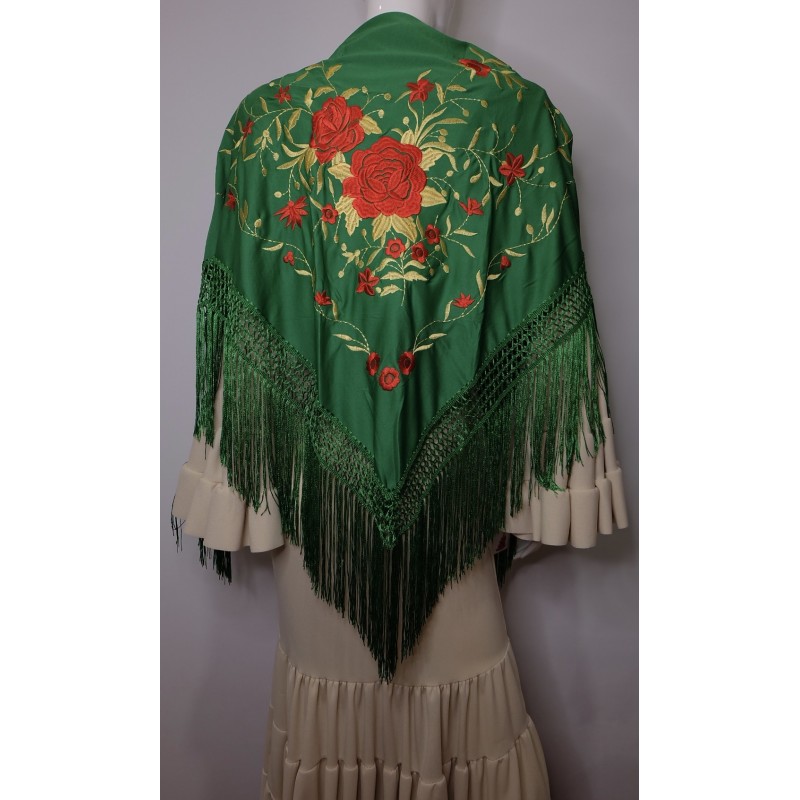 Mantón verde bordado en rojo y dorado